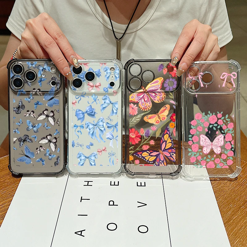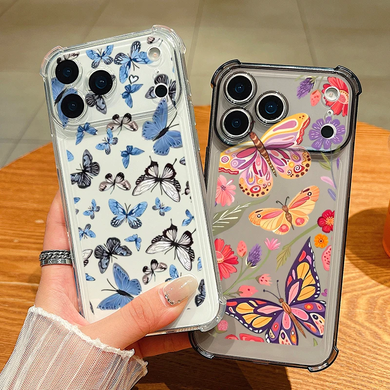 Beautiful Butterfly Pattern Phone Case For iPhone 17 Pro Max Air 16 15 Pro Max 14 13 12 Pro Max 11 Transparent Soft TPU Cover
