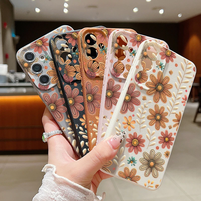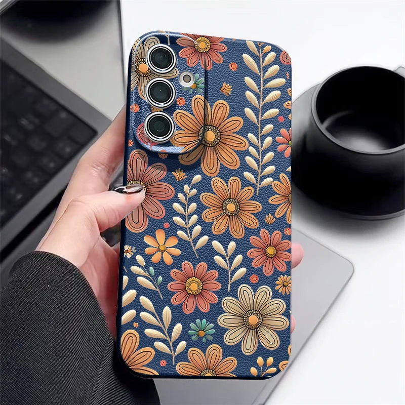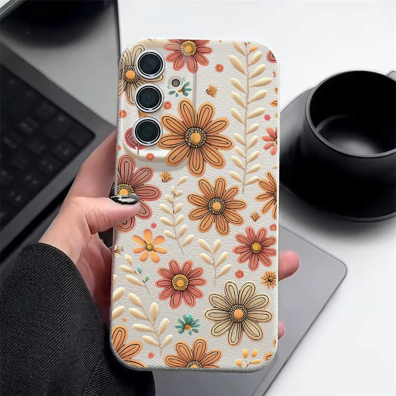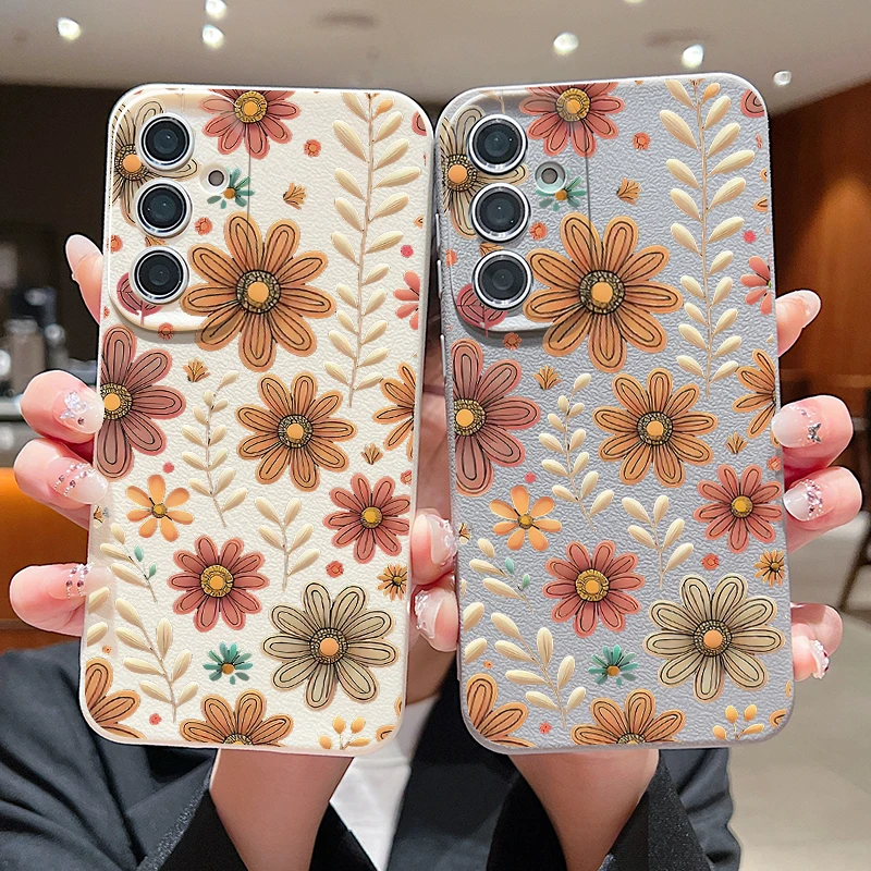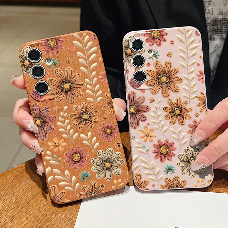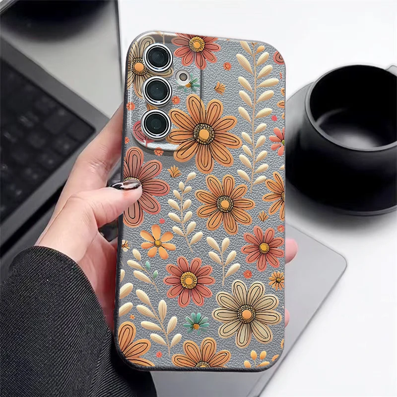 Case For Samsung Galaxy S25 Edge S24 S22 Ultra S23 FE A17 A56 A16 A36 A26 A55 A15 A25 A54 5G Cartoon Flower Soft TPU Phone Cover