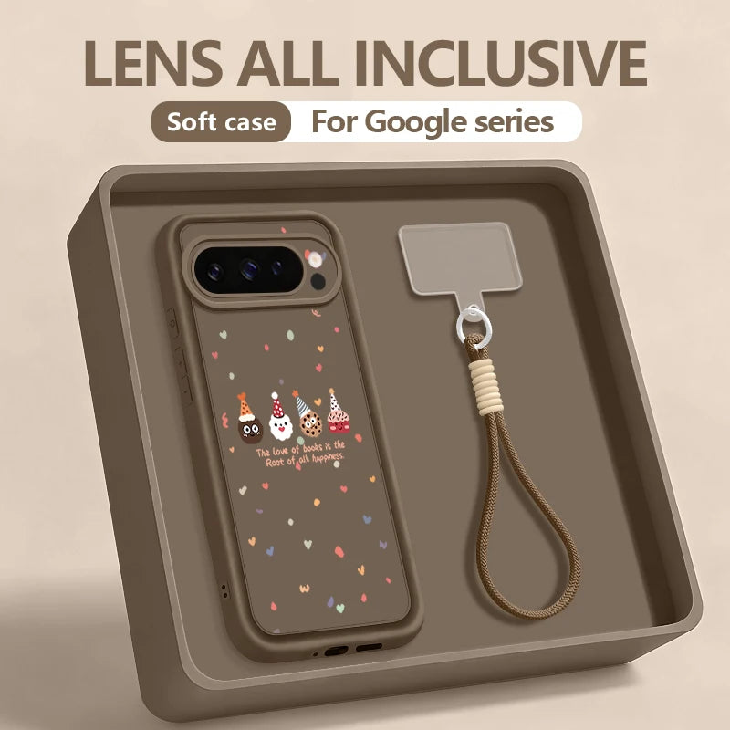 Christmas Doll Printed Phone Case For Google Pixel 10 8 7 Pro 8A Pixel 9 Pro XL Soft TPU Wrist Strap Lanyard Silicone Back Cover