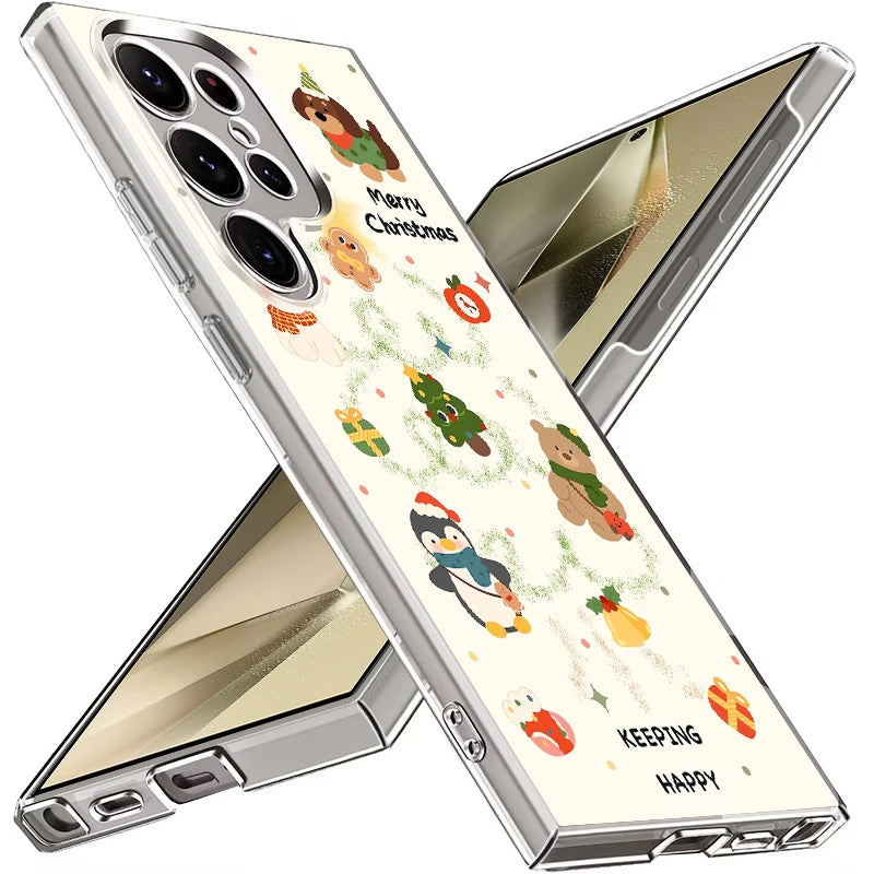 Christmas Tree Snowman Pattern Hard PC Case For Samsung Galaxy A56 A16 A36 A55 A15 A25 A26 A54 A53 5G Transparent Phone Cover