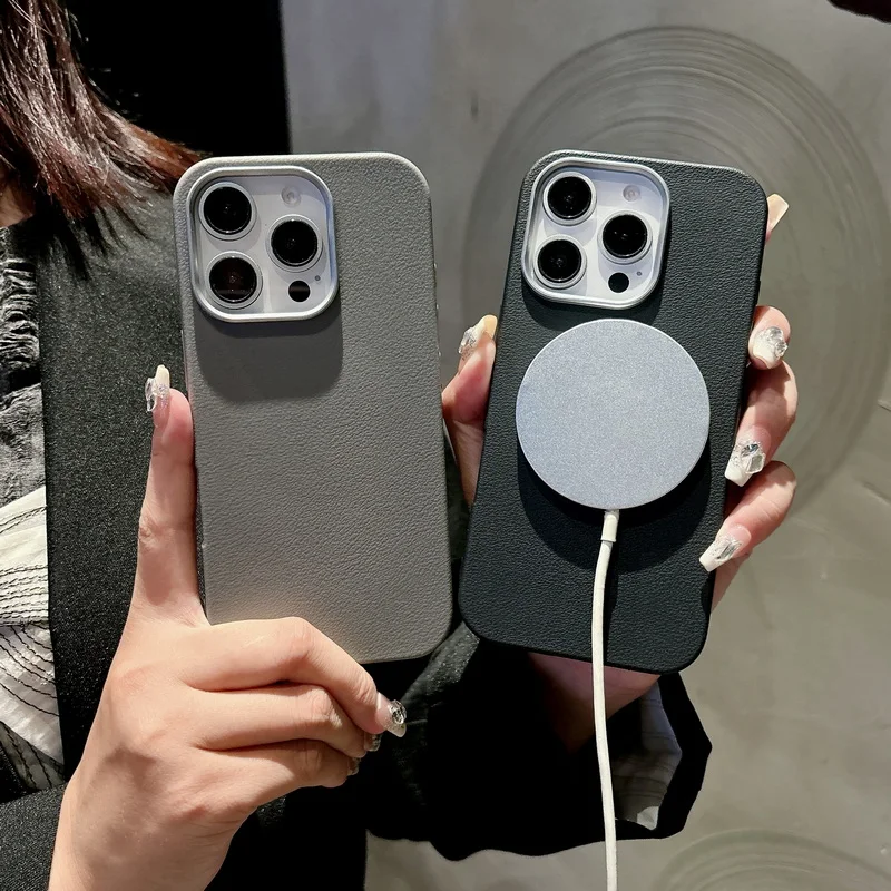 Leather Texture Soft TPU Case For Magsafe For iPhone 16 15 Pro Max 14 Plus 13 12 Pro Max 11 Shockproof Solid Color Phone Cover