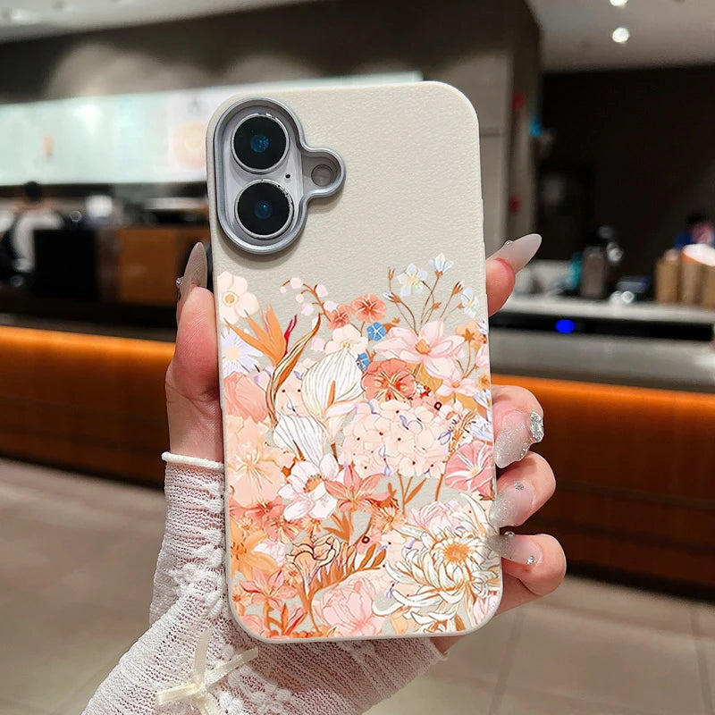 Leather Texture TPU Phone Case For iPhone 17 16 15 Pro Max 14 15 Plus 13 12 Pro Max 11 Air Pink Flowers Printed Soft Back Cover