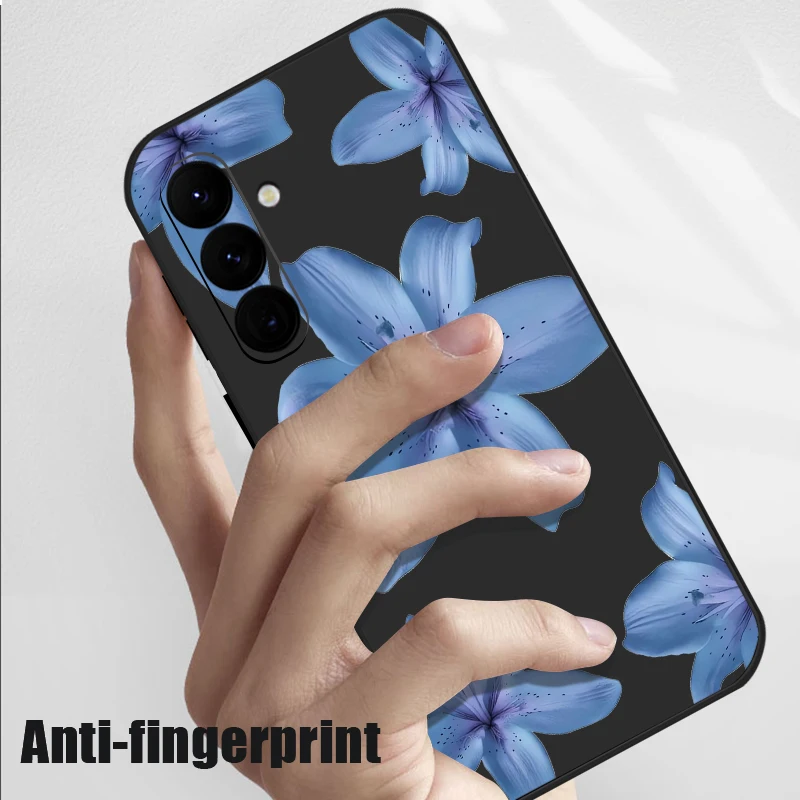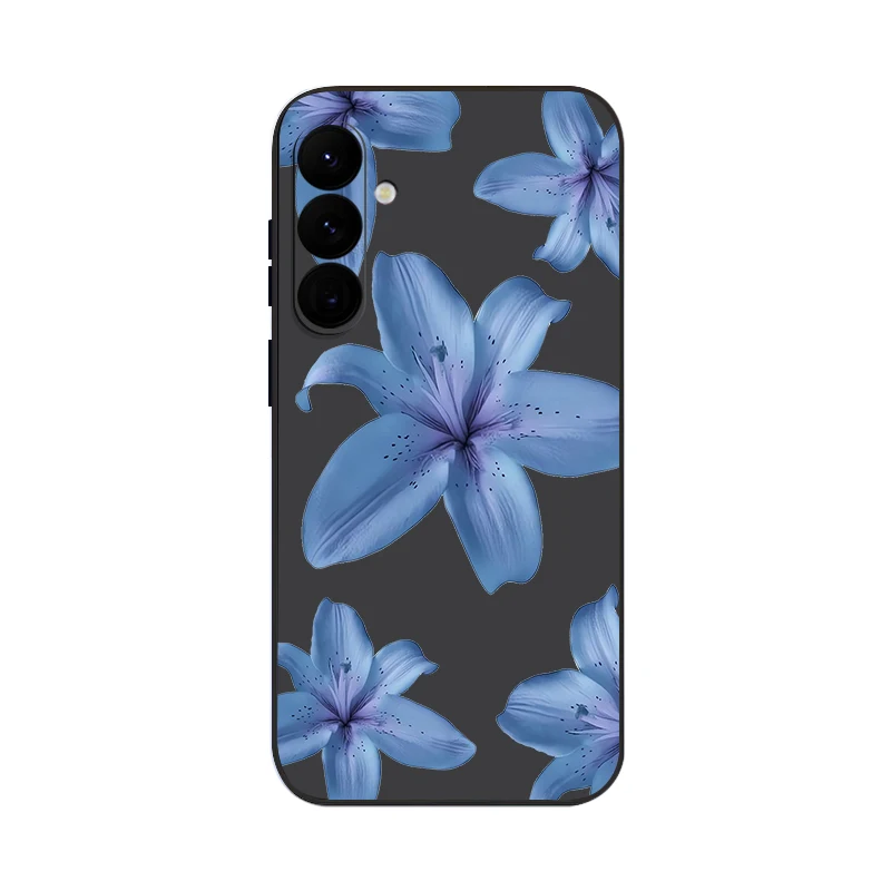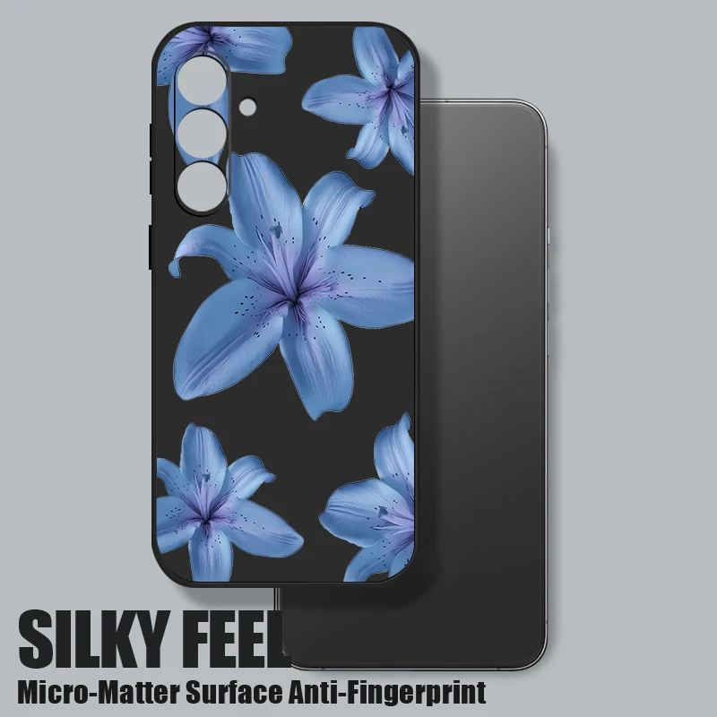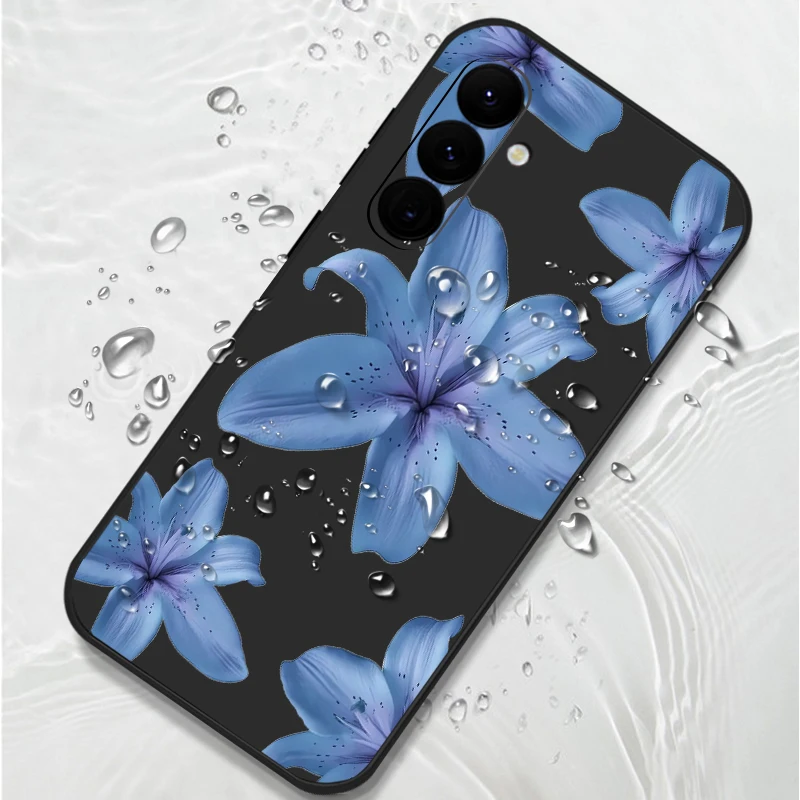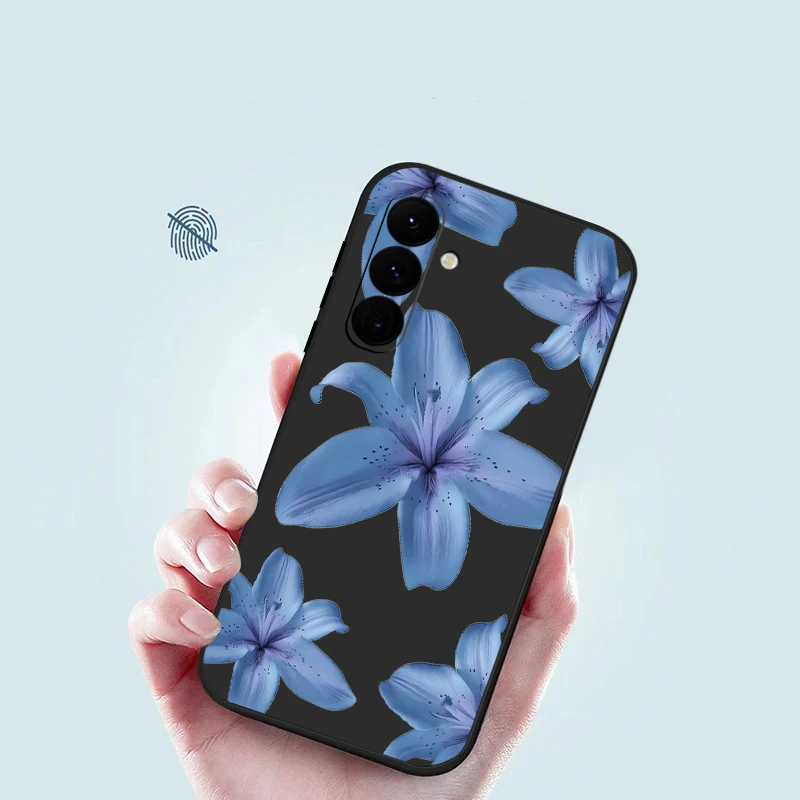 Soft TPU Phone Case For Samsung Galaxy S24 S25 FE S25 S23 S22 Ultra A17 A56 A16 A55 A25 A15 A36 A54 5G Blue Flower Print Cover