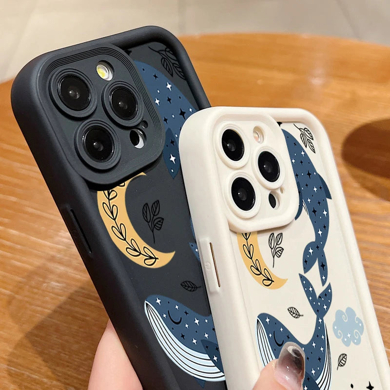 TPU Phone Case For iPhone 17 16e 15 16 Pro Max 14 16 Plus For iPhone Air 13 12 Pro Max Cartoon Whale Printed Soft Silicone Cover