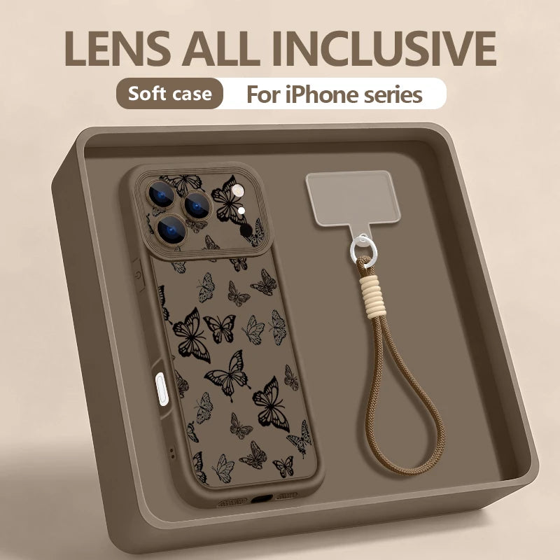 Wrist Strap Lanyard Phone Case For iPhone 17 Pro Max Air 16E 16 14 15 Pro 12 13 Pro Max 11 Black Butterfly Pattern TPU Cover